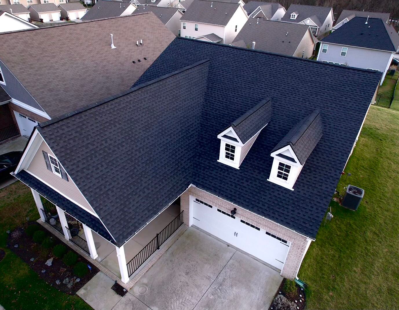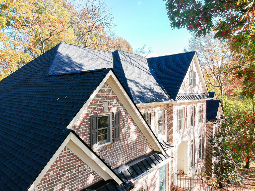 Storm damage restoration on a beautiful home in Brentmeade in Franklin, TN. This was an roofing insurance claim for a full roof replacement using a GAF HDZ architectural shingle.