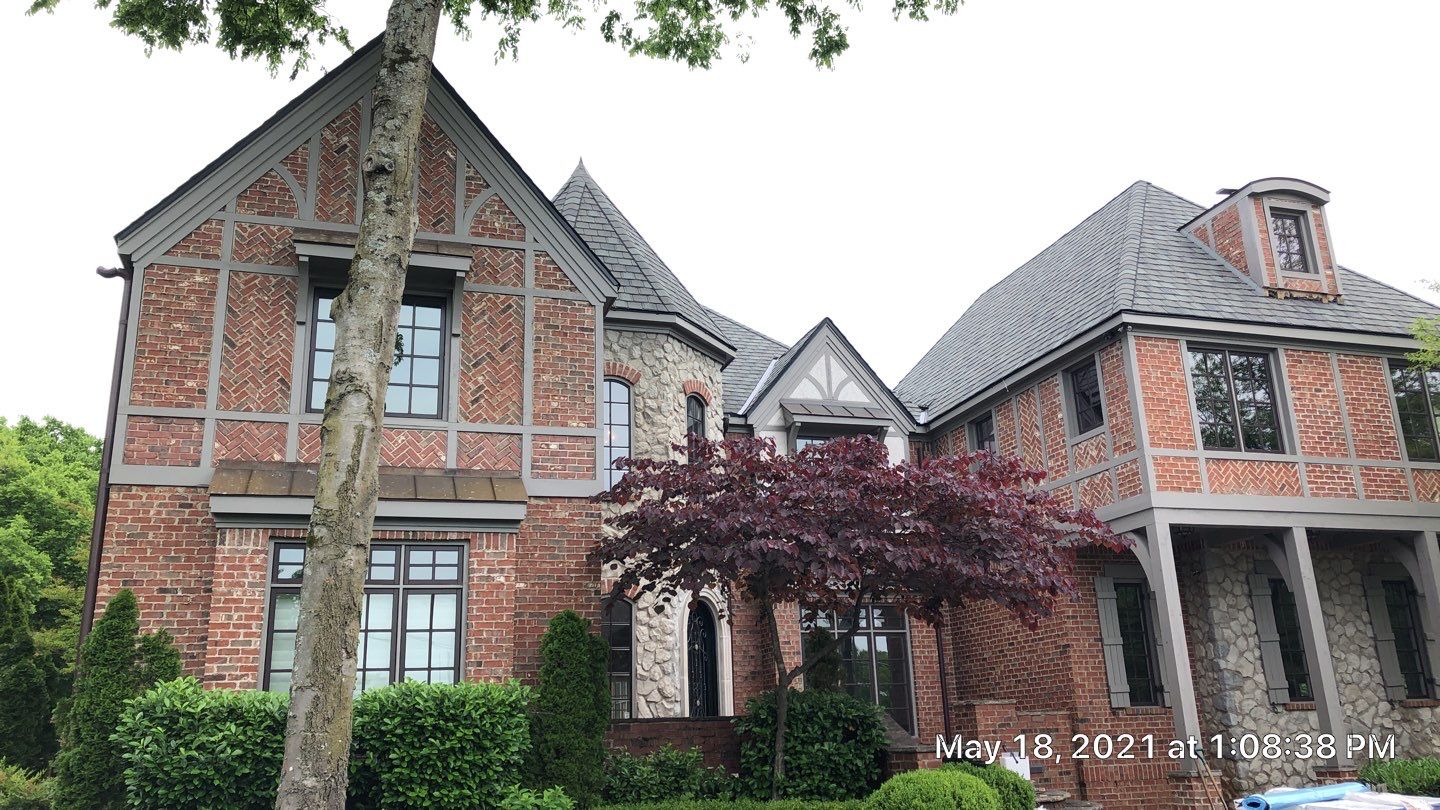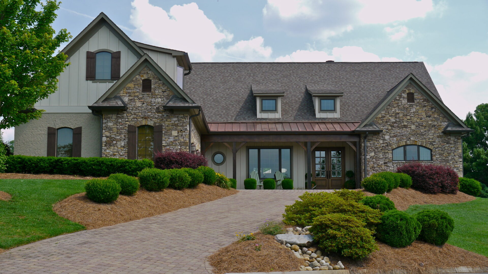 Stunning home in Brentwood, TN, experienced storm damage to their roof and existing copper. This homeowner went with a designer shingle from GAF! You will love this Camelot II Shingle in Weathered Timber along with the copper roofing accents on this amazing home!